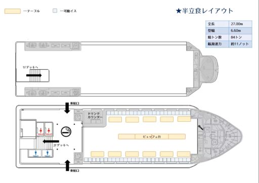 ローズの後継船として新しく造船された大型パーティー船です。2018年4月から運航開始しました。