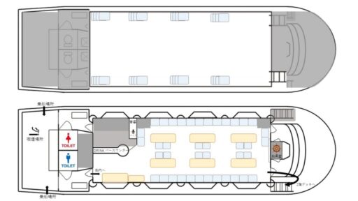 船内と2階デッキの基本レイアウトはこちらになります。
