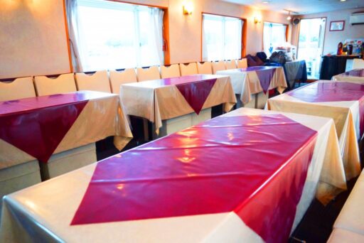 テーブルクロスやお花の装飾を追加すれば、婚礼二次会にも最適な船舶です。