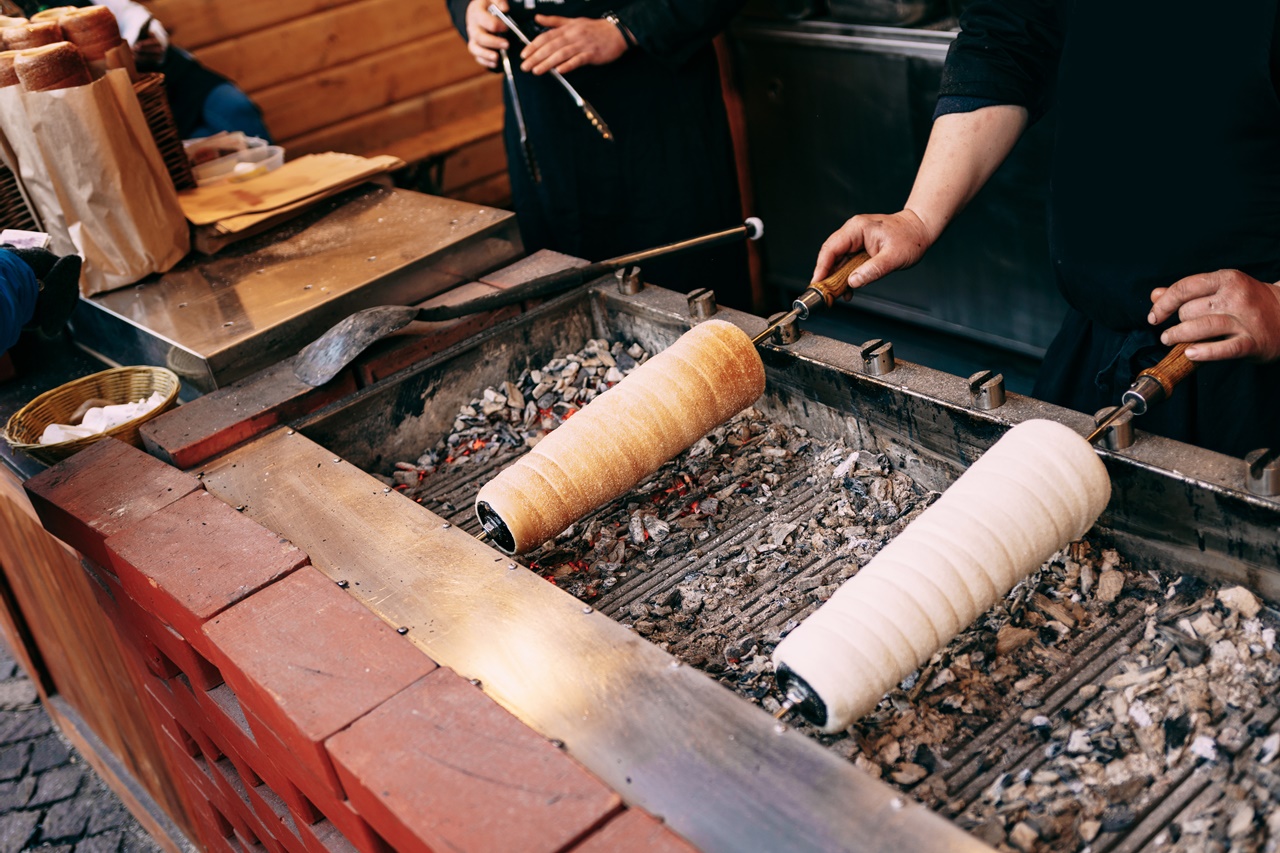 例えば、バームクーヘンです。木の棒にアルミホイルをまいて、薄力粉に砂糖、卵、レモン汁などを混ぜた生地をかけます。この棒を火の上でクルクル回しながら焼きます。