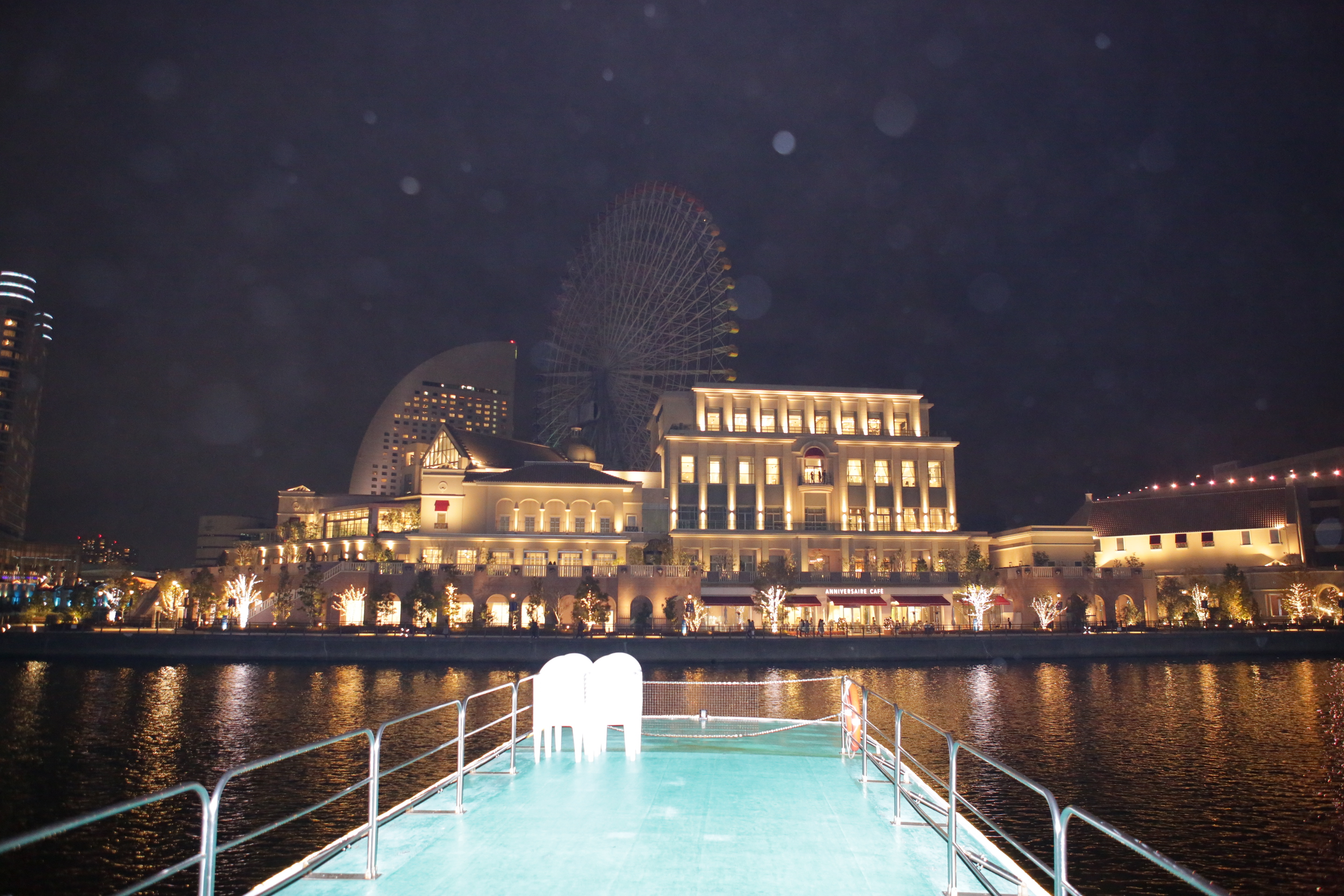 中型パーティー船「オリエンタル」は2階が全面デッキになっており、360度パノラマで景色が見られるため、花火と共に横浜の夜景も楽しめます。