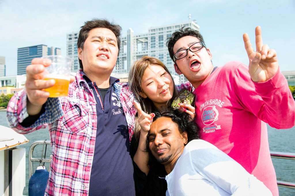 船の上のビアガーデンなら、外で飲む開放感を味わいながら、冷房の完備されたクルーザーの中や、海風にあたりながら快適にお酒を楽しむことができ、都会の喧騒からひととき離れ、気持ちよく過ごしていただけます。船上の風通しのよさは本当に最高です!