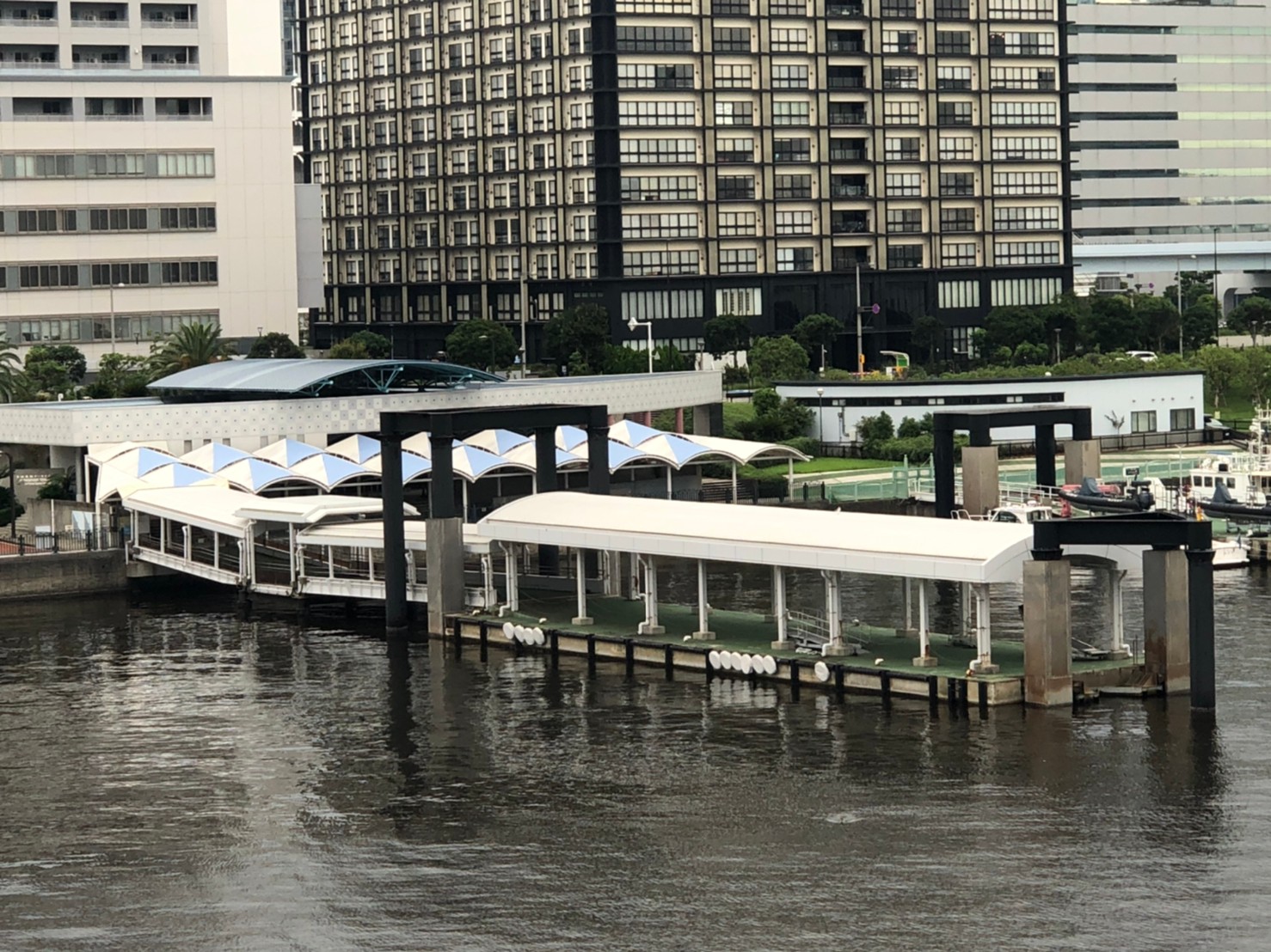 東京国際クルーズターミナルのすぐ横に位置する乗船場所です。ゆりかもめの駅からも歩きやすく、アクセスの良い乗船場所です。周辺にコンビニや売店は有りませんので、駅からお越しの際は途中で必要な買い出しをされるのがおすすめです。