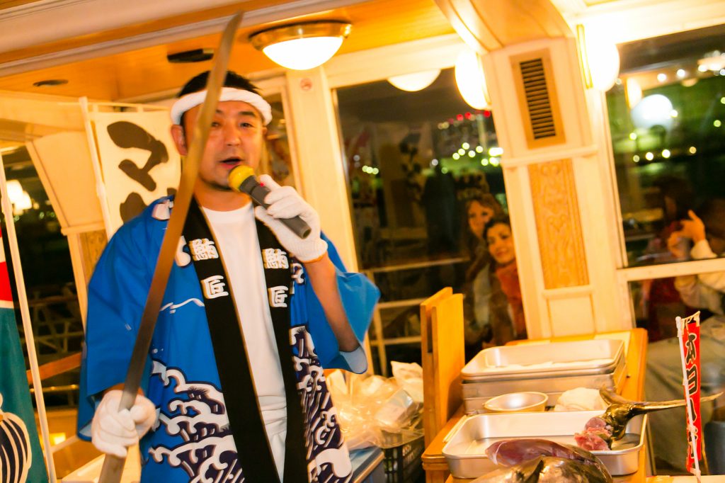 This performance, in which an exciting show is followed by delicious maguro, is a taste experience no matter how many times you have experienced it. It’s perfect for a wedding or other celebration, a commemorative event, or even entertaining guests from overseas. It’s recommended for those looking for a cruise party with impact!