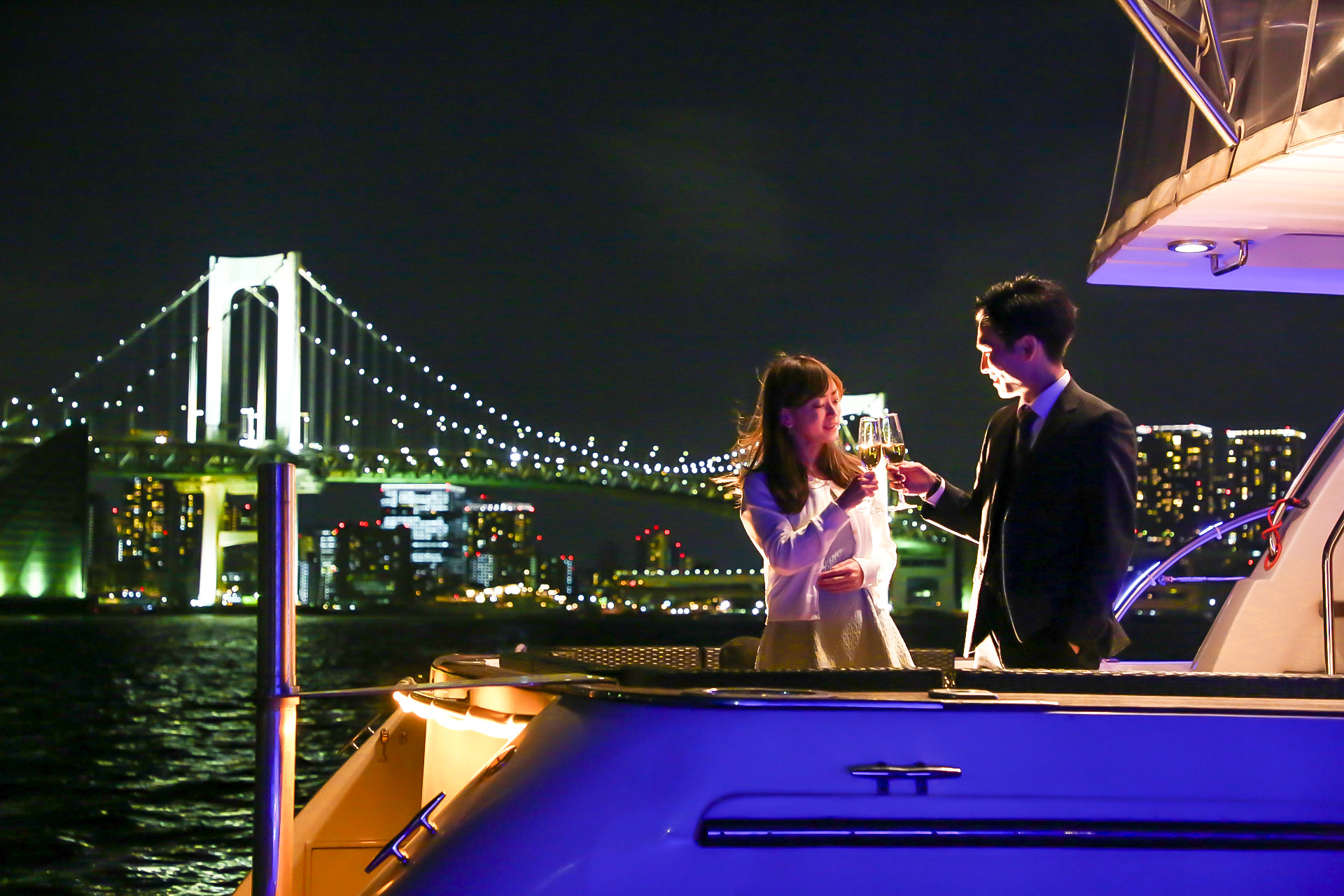 東京湾・横浜港周辺の絶景を舞台に、貸切クルーザーで叶えるサプライズプロポーズ。