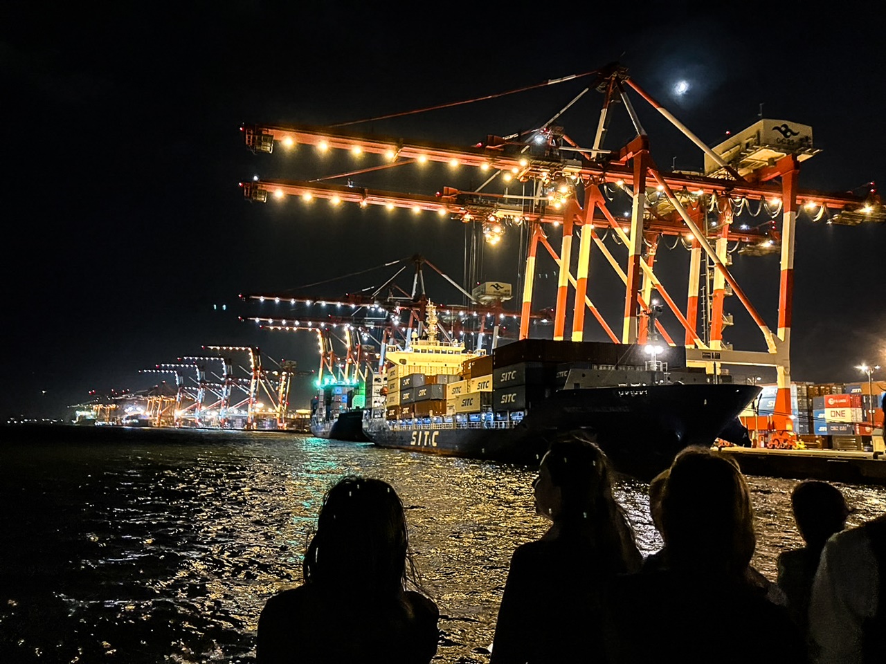 観光地の賑わいを抜け、船はゆっくりと工業地帯へ。
