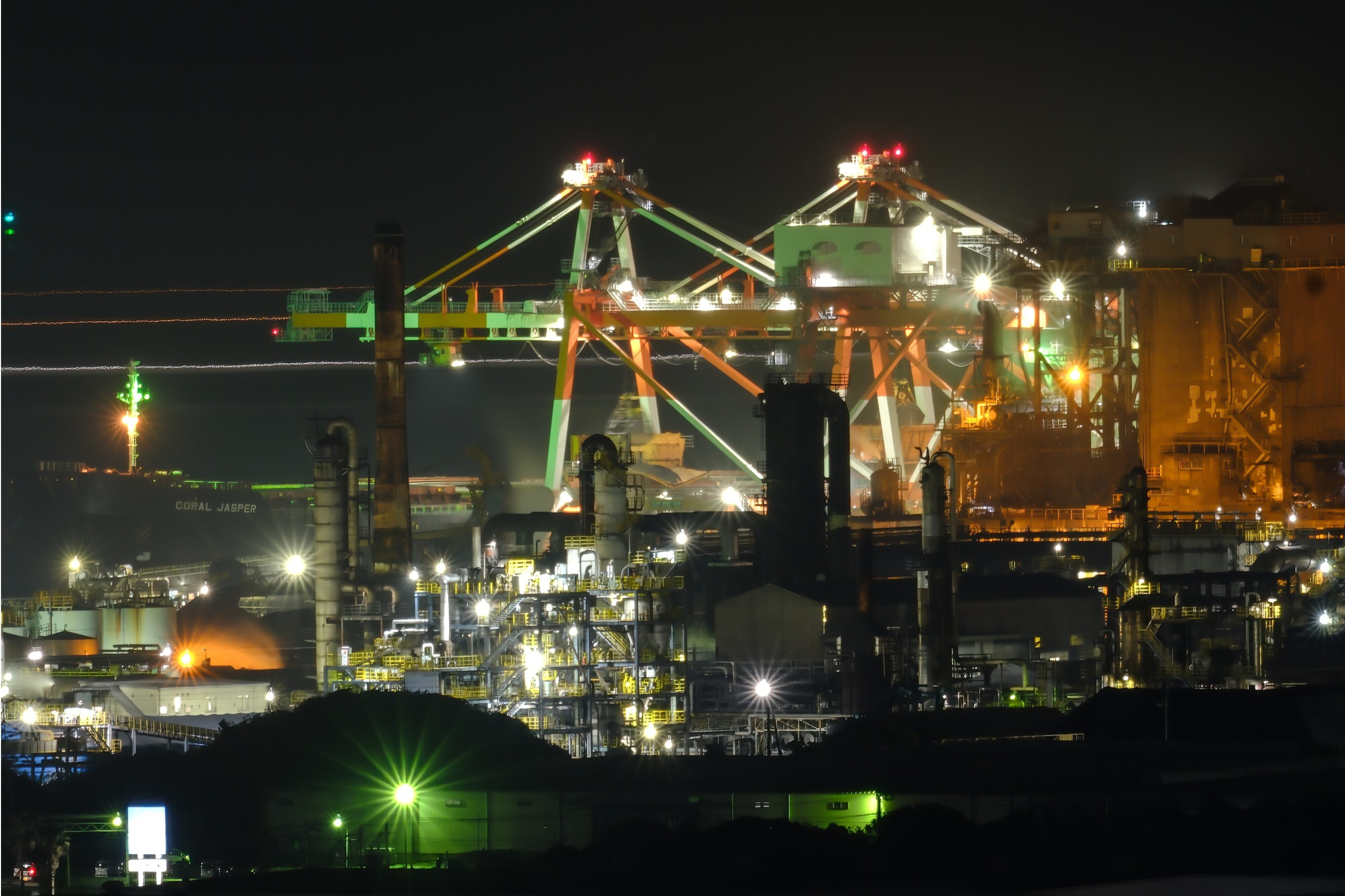 製鉄所や発電所、プラントやタンクなど、昼間とはまったく異なる輝きを放つ工場エリアを、船上デッキや窓越しにじっくり観賞できます。