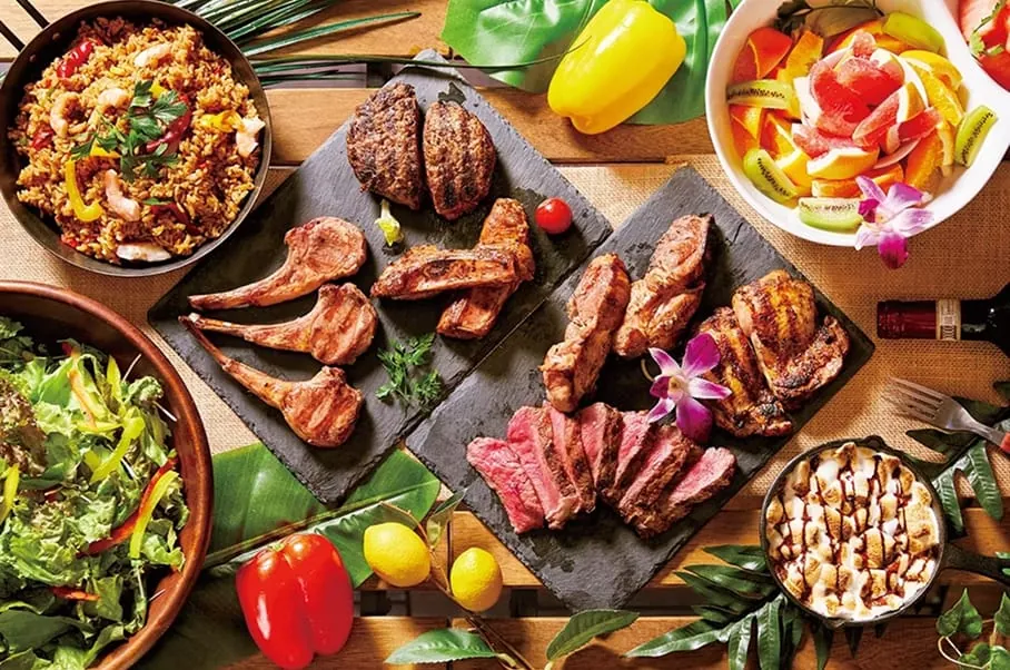 和洋中にBBQと幅広いお料理コースの中から、自由にお料理をお選びいただけます。イタリアンとBBQを半分ずつ組み合わせたり、オプションで出張寿司職人を入れたりと、その選択肢は無限大。