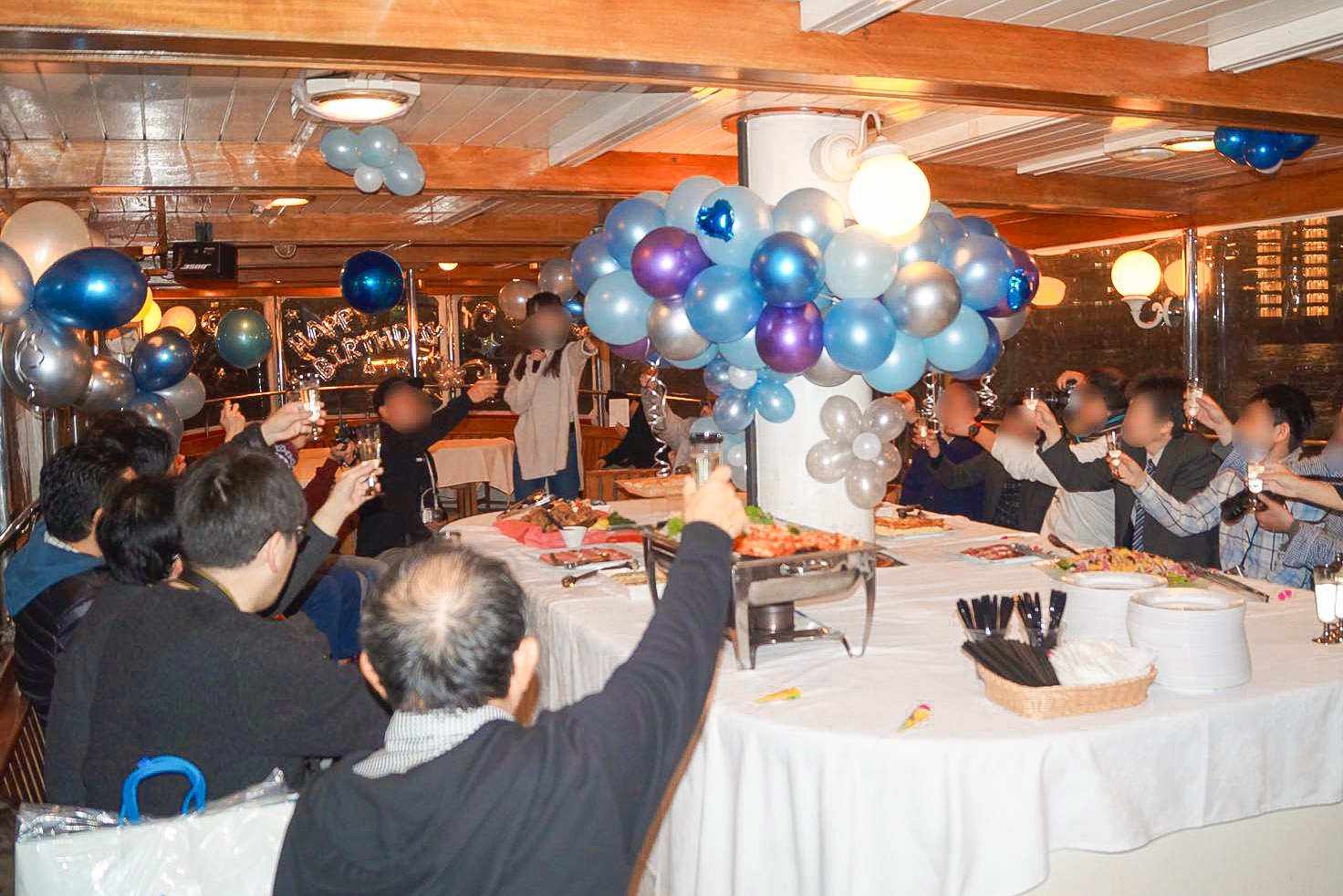 アニバーサリークルーズなら、他のお客様を気にすることなく理想のパーティーが実現できます。ベリーダンサーやマジシャン、マグロの解体ショーを組み込むことも可能です。記載されていないオプションやサプライズでも、可能な限りお手伝いしますので、まずはご相談ください。