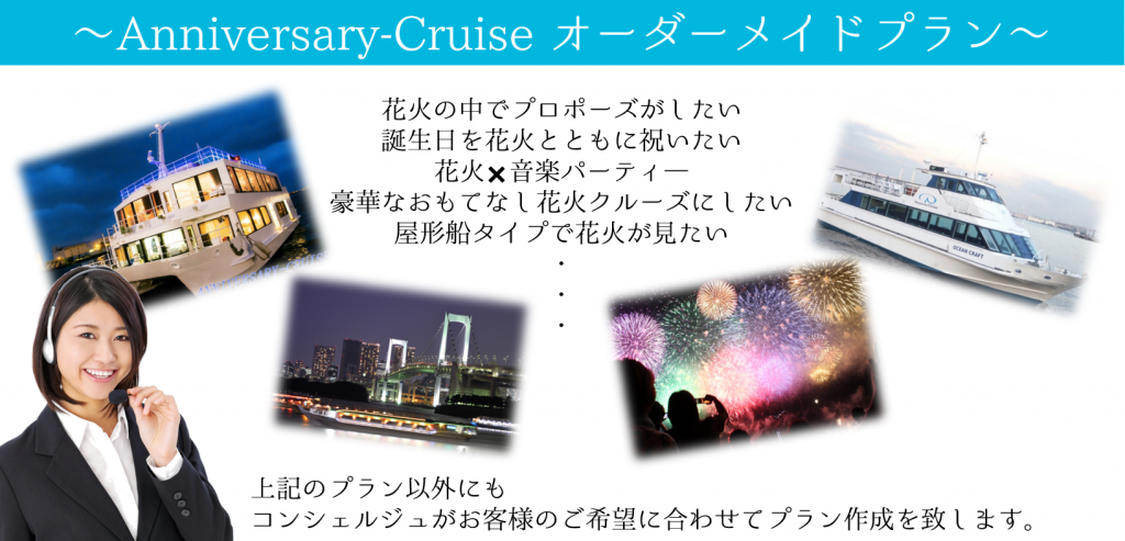 圧倒的迫力の花火を海上の特等席でぜひお楽しみください。