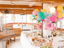 空に向かって一斉にバルーンを放ち、参加者の心を一つにします。リリースするまでの間は船内の装飾としても楽しめます。