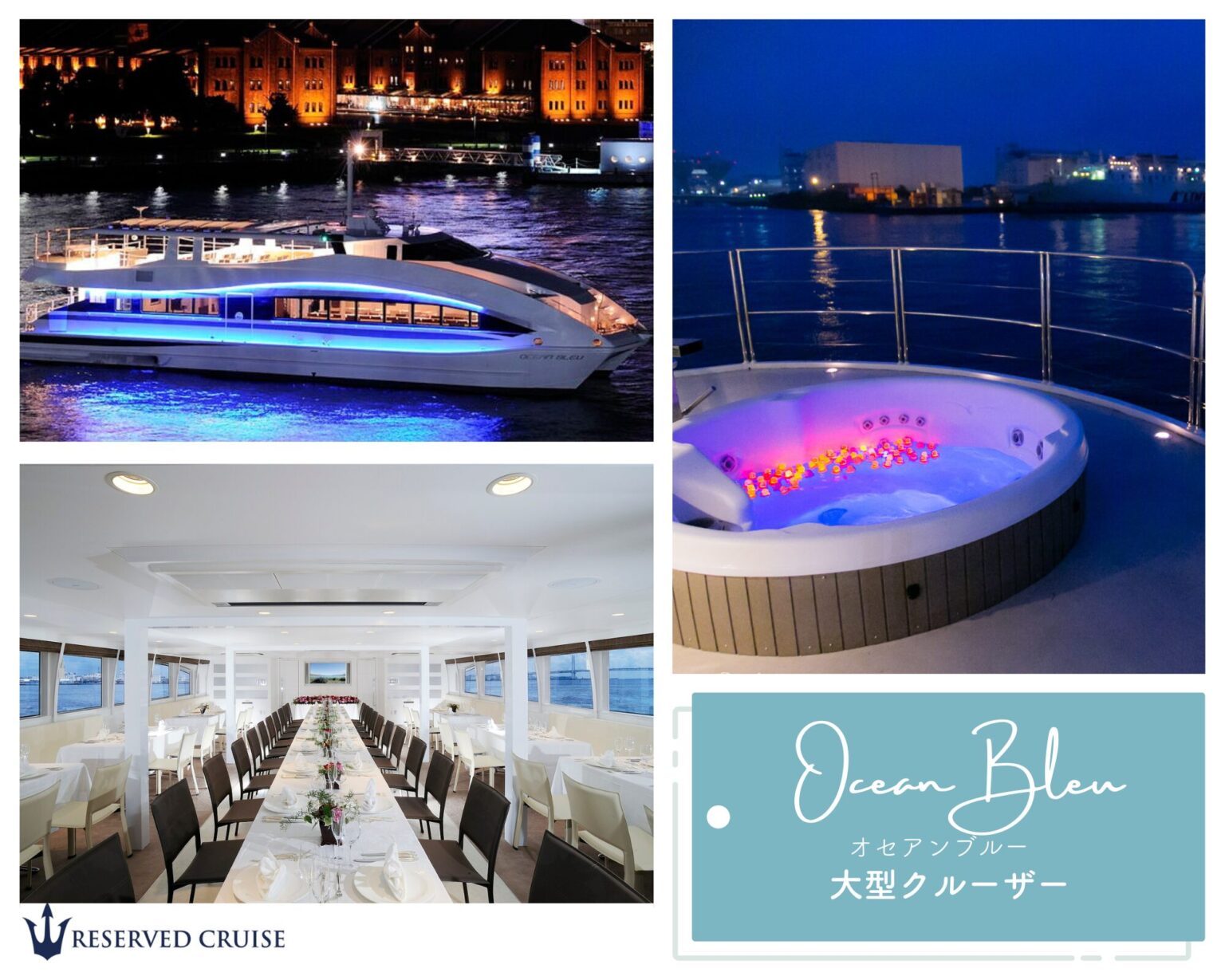 また、クルーズ時間は各桟橋の利用可能時間より3時間を自由に設定していただけます。(15分単位)