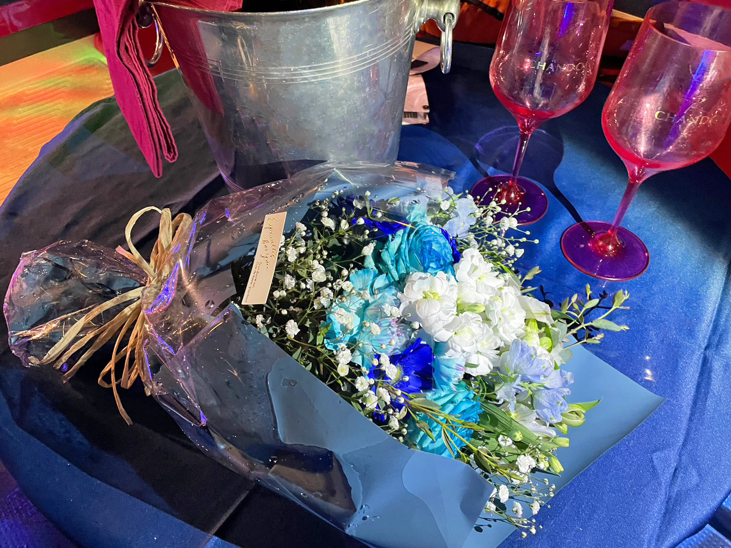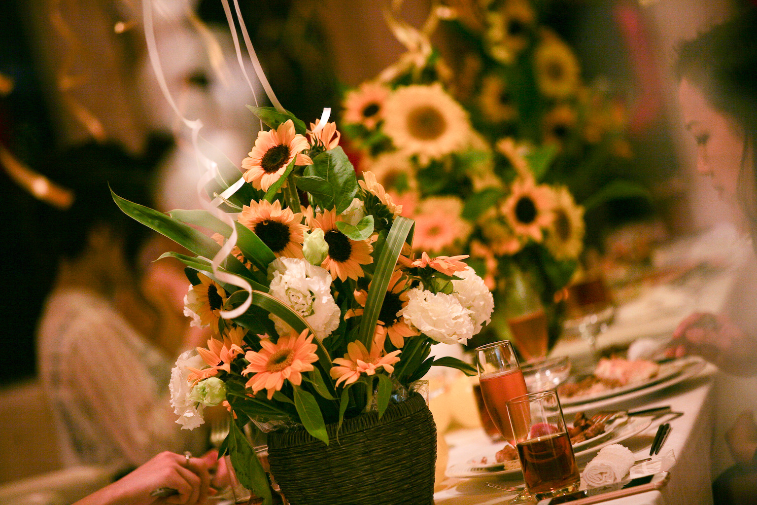 テーブルやビュッフェ台を華やかに彩ると参加者の心も一気に華やかになりますよ。