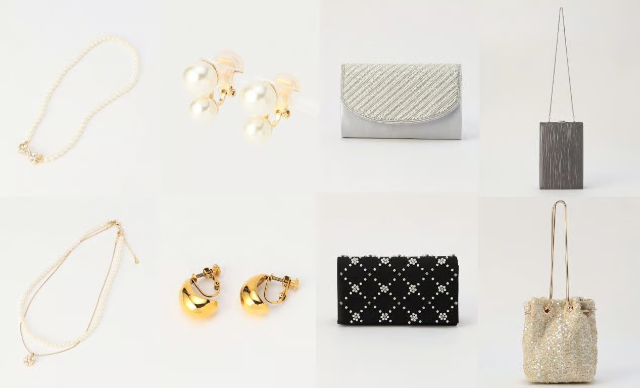 きらめくイヤリングや上品なクラッチバッグなど、細部までこだわったアイテムで、特別な一日をより華やかに演出してください。
