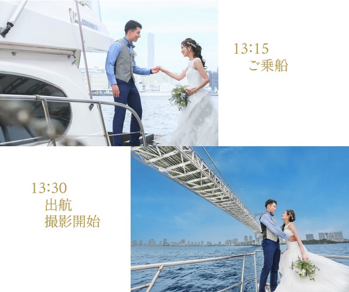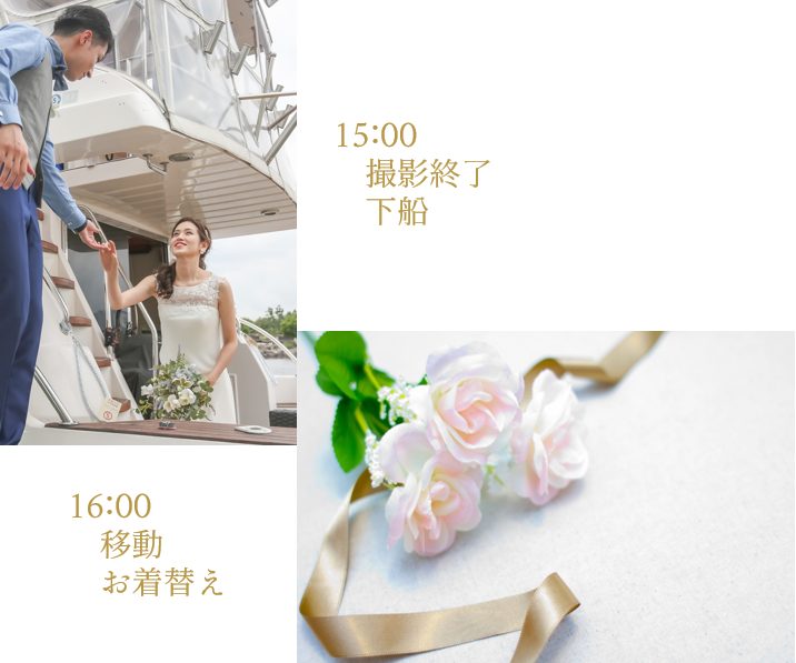 白い船体はどのドレスにも馴染み、幸せなおふたりを爽やかに引き立てます。