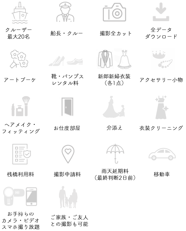 アニバーサリークルーズのプランは、ご支度からご帰宅まですべてご料金に含まれております。