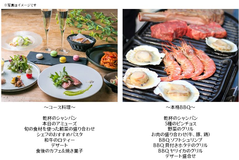 プラン①でご紹介した、ディナーコースとBBQからお選びいただけます。