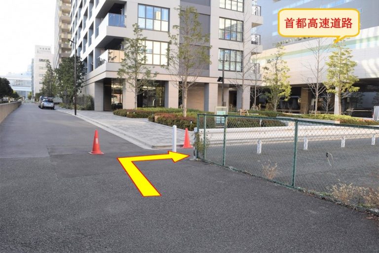 マンション手前のガードレール沿いに、首都高に向かって進みます。